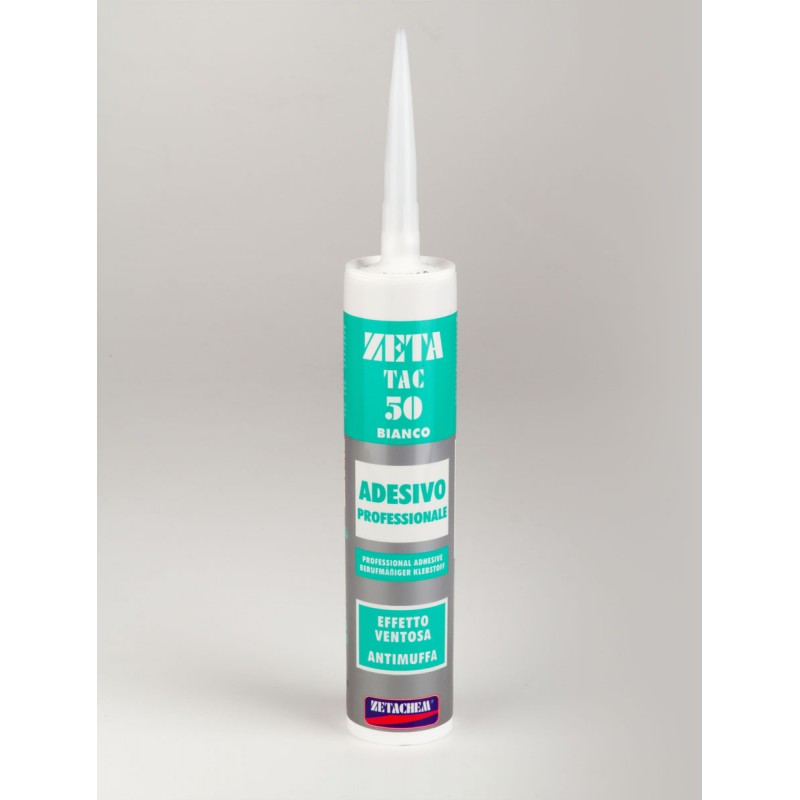 Adesivo acrilico in cartuccia professionale ad effetto ventosa per incollaggio di legno, polistirolo, gesso, muratura, piastrelle, moquettes e materiali plastici.