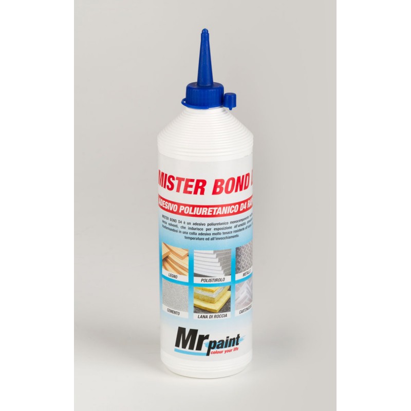 Adesivo poliuretanico monocomponente reattivo, senza solventi, che indurisce per esposizione all'umidità atmosferica trasformandosi in una colla adesiva molto tenace e resistente all'acqua, alle temperature ed all'invecchiamento. Adatto a legno, polistirolo, metallo, cemento, lana di roccia e cartongesso. Flacone da 500 gr.