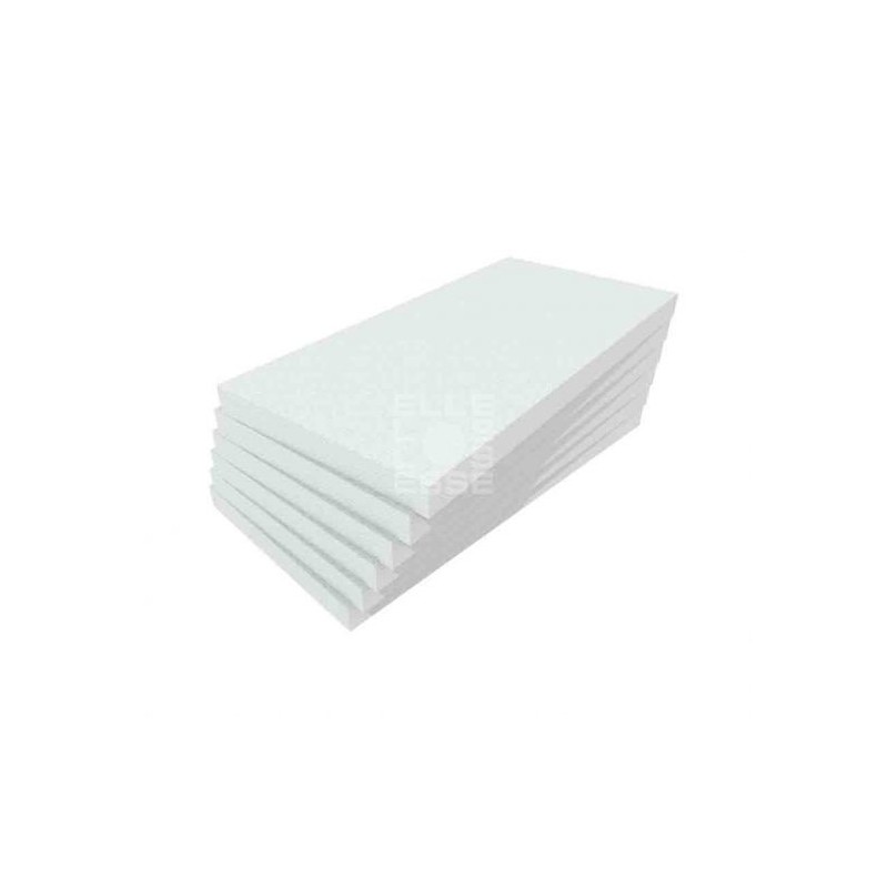 Lastre in polistirene espanso sinterizzato (EPS) con struttura a celle chiuse classe autoestinguente E, tagliati a spigolo vivo con marcatura ETICS, conducibilità termica 0,035 W/mK. Confezione da 3 mq.