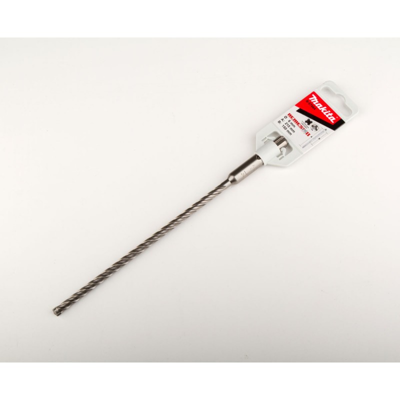 Punta sds-plus compatibile, lunghezza 215 mm, foro da 6, resistenza aumentata in caso di contatto con tondini di ferro. 4 taglienti e 4 spirali per una maggiore stabilità e migliore estrazione di detriti e polveri, il nuovo design e le placchette ad alte prestazioni garantiscono l'esecuzione veloce e precisa di forature in muratura piena, forata e in calcestruzzo.