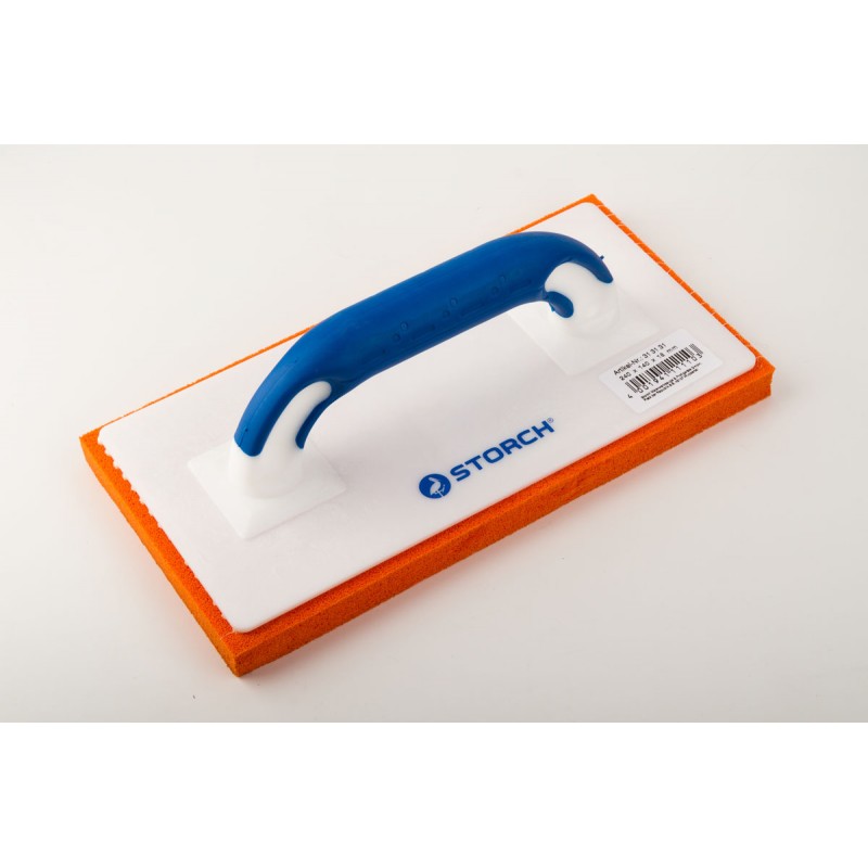 Frattone in plastica con rivestimento in gomma spugnosa fine 18 mm, per una lavorazione e rasatura più fine dell'intonaco. Lunghezza 280 x larghezza 140 mm